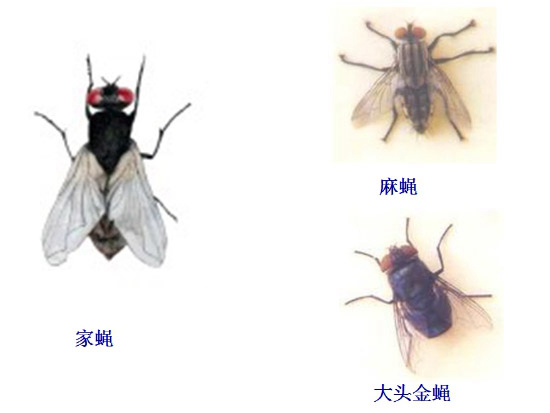蒼蠅孽生和飛落于垃圾堆、廁所、腐爛的動物尸體以及膿血、痰液和嘔吐物之間,并從中覓食。其體表及腹中攜帶著數(shù)以萬計的細菌、病毒以及寄生蟲卵。蒼蠅有邊吃、邊吐、邊拉的習性,他飛落到哪里,哪里的食物、食具就會受到細菌、病毒、蟲卵的污染,當人們吃了被污染的食物或使用被污染的食具時,就可發(fā)生腸道傳染病或寄生蟲病。